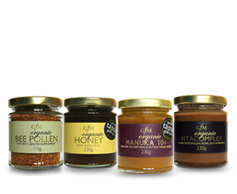 Our 100% Organic Power Honeys combine all of Mother Nature’s treasures from the hive including Pollen, Propolis and Royal Jelly.